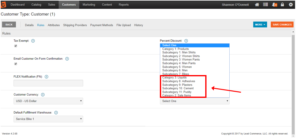 NOTE: Make sure all of your product categories are mapped in your Product Catalog first, or they will not appear as options for selection.
